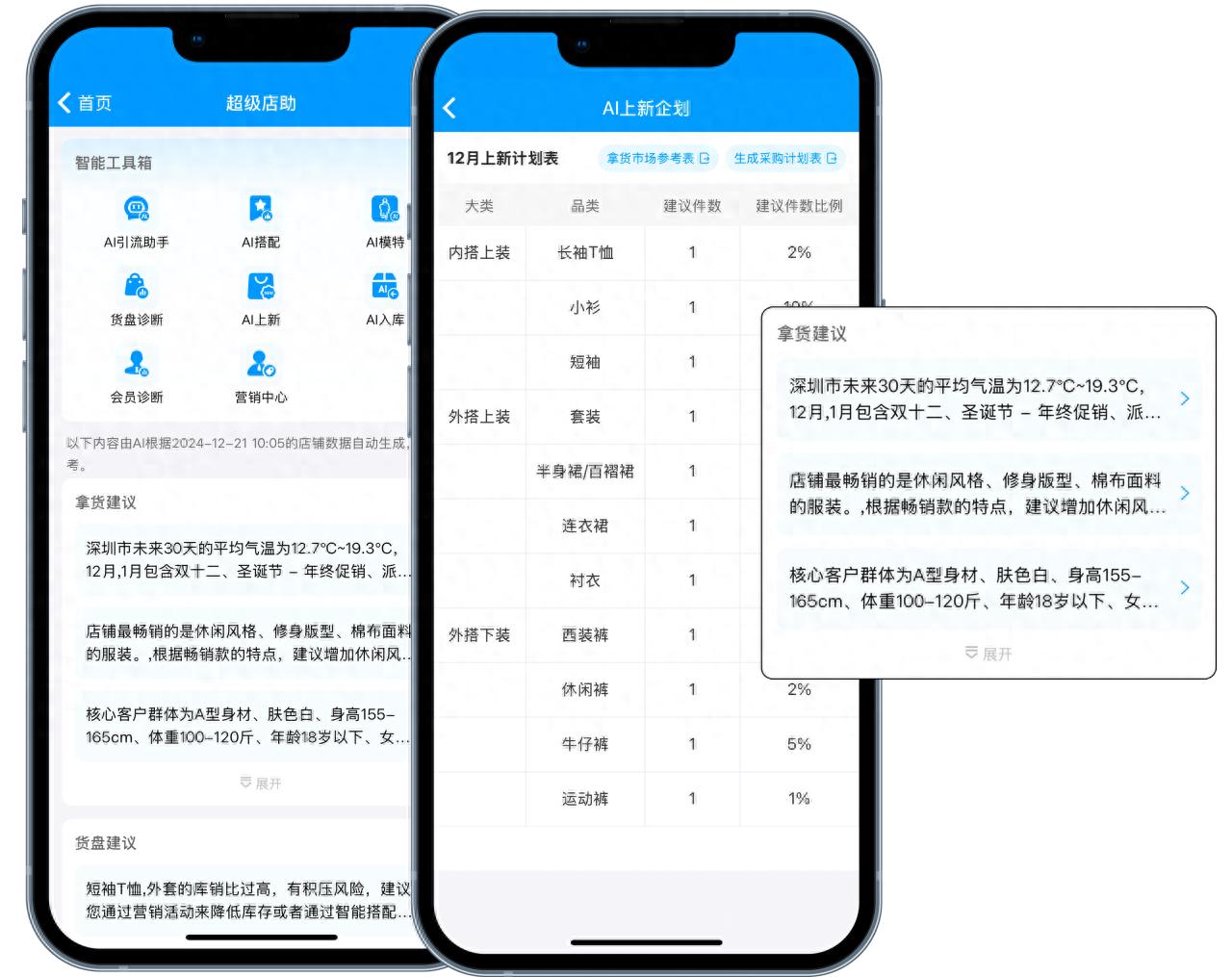 - AI货盘诊断与决策: 智能分析历史销售数据,为商家提供科学的进货建议,避免库存积压,提升资金周转率。