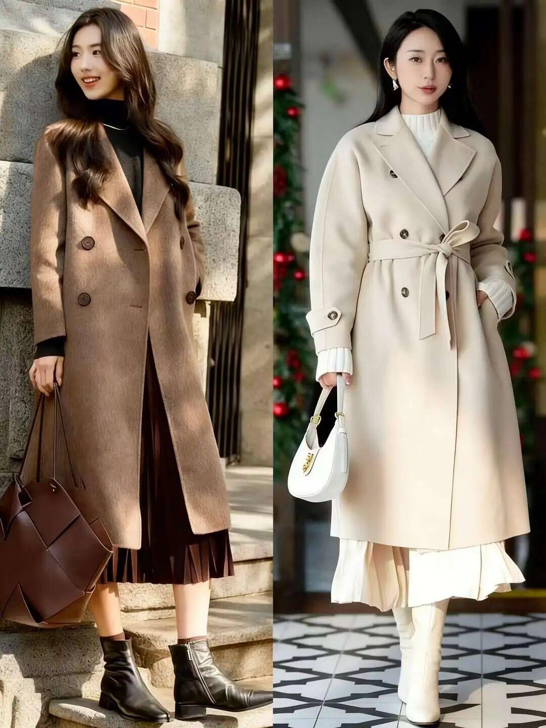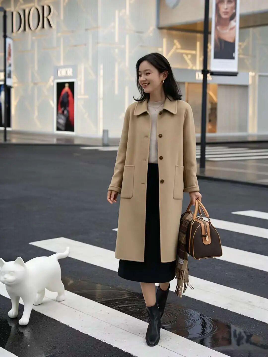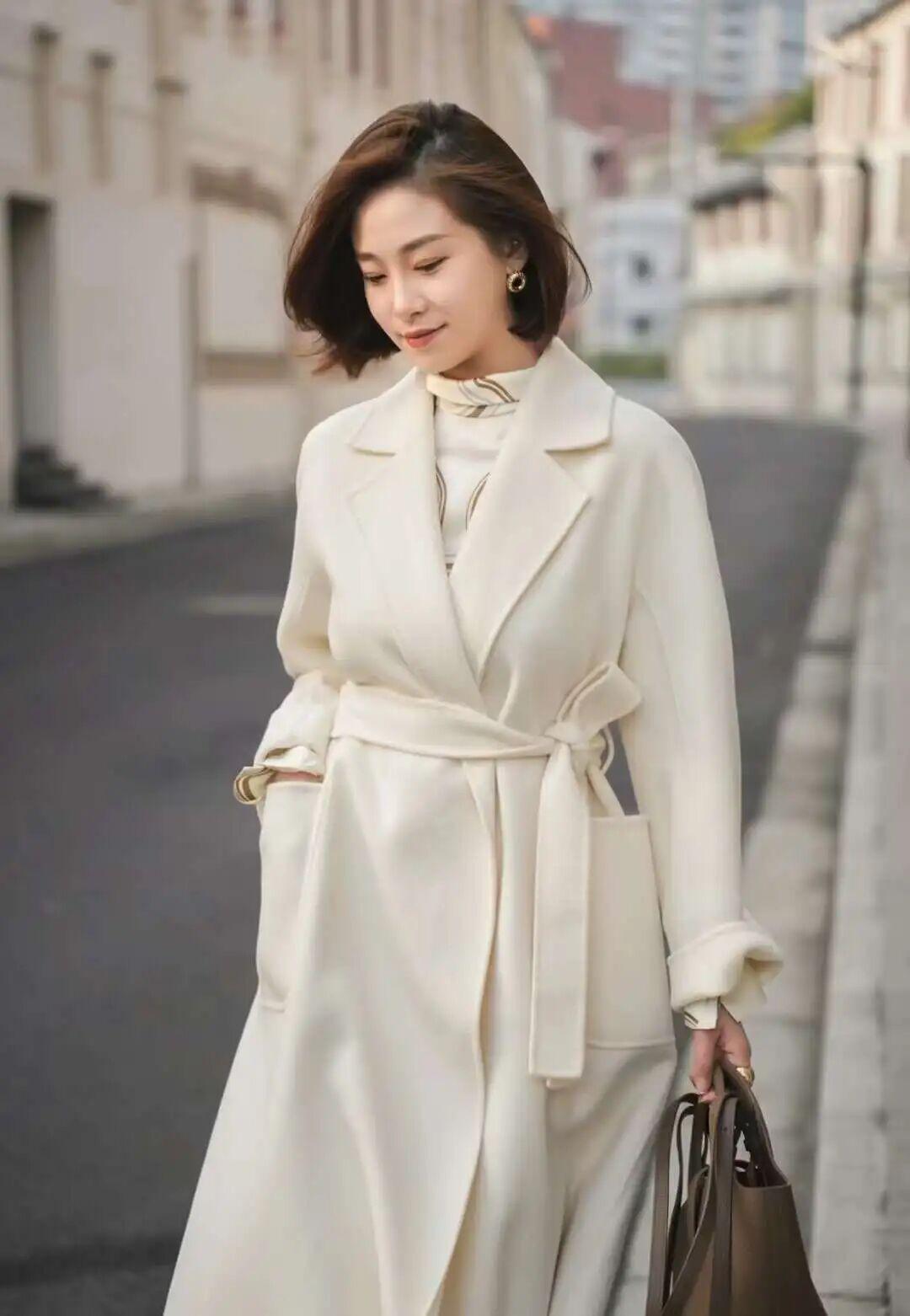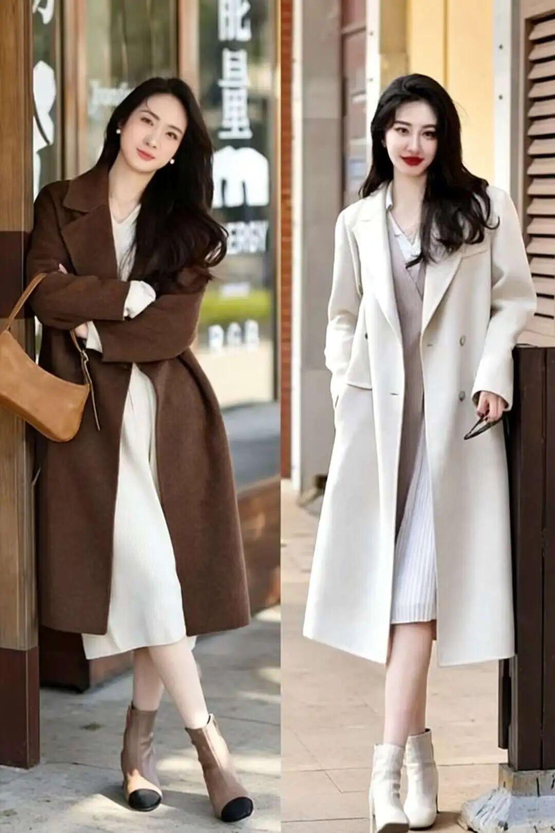 再搭配长款风衣,整体造型在纵向上看更显高、更显瘦。而且整个人看起来温柔、大气、有格调,完全不会有局促、臃肿的感觉。