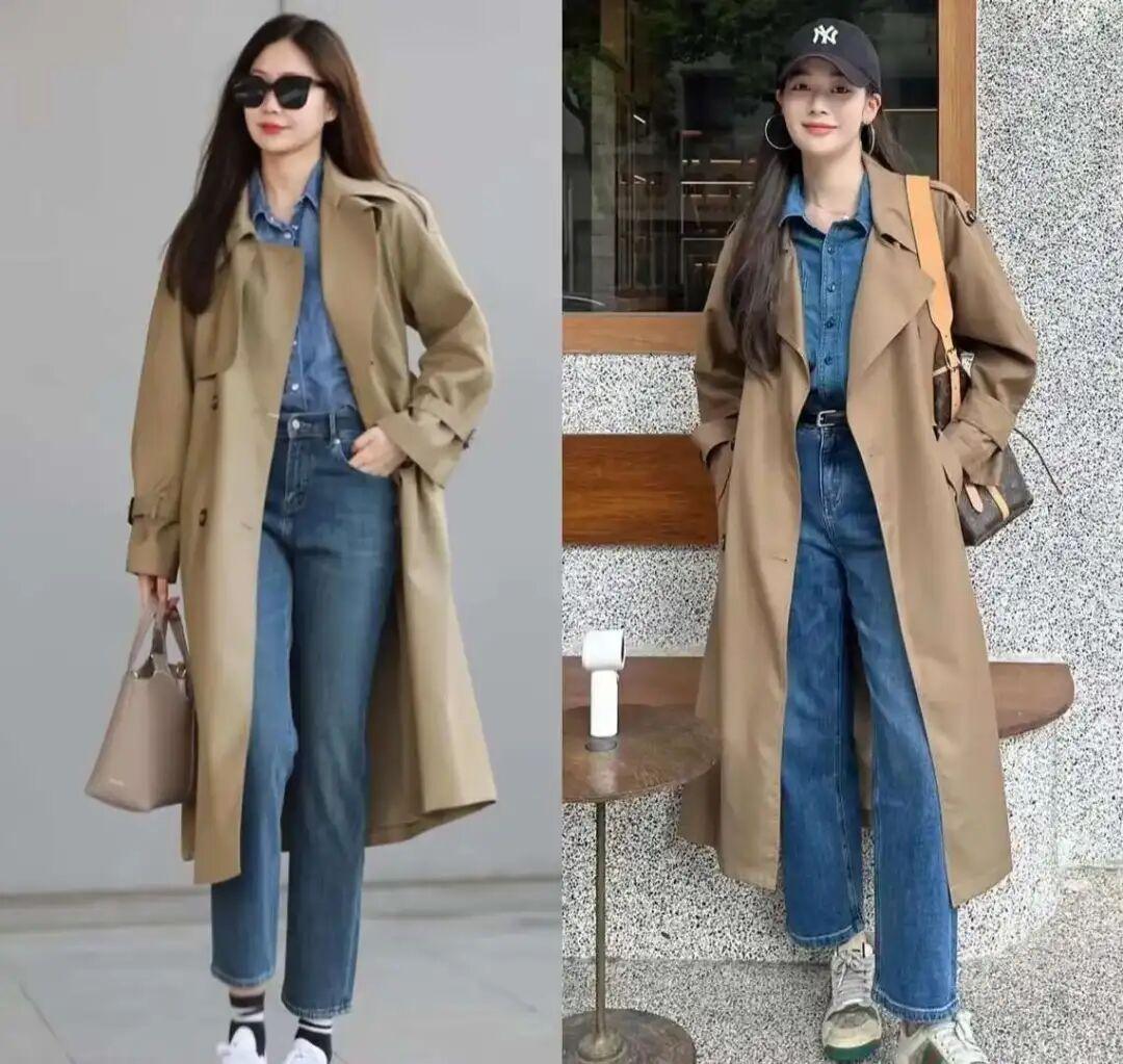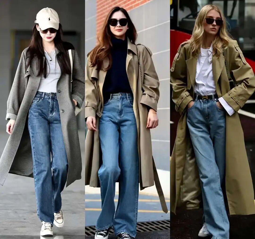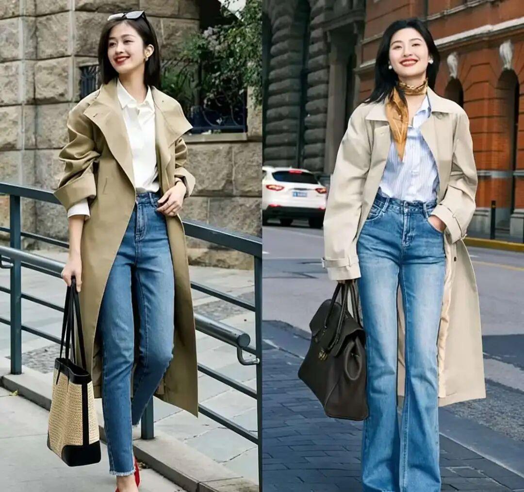 对于追求质感与气质的中年女性来说,这种不上不下的搭配,很难穿出高级感。久而久之,就算风衣本身质感不错,也会被牛仔裤拉低档次,显得随意、敷衍,甚至有点邋遢。