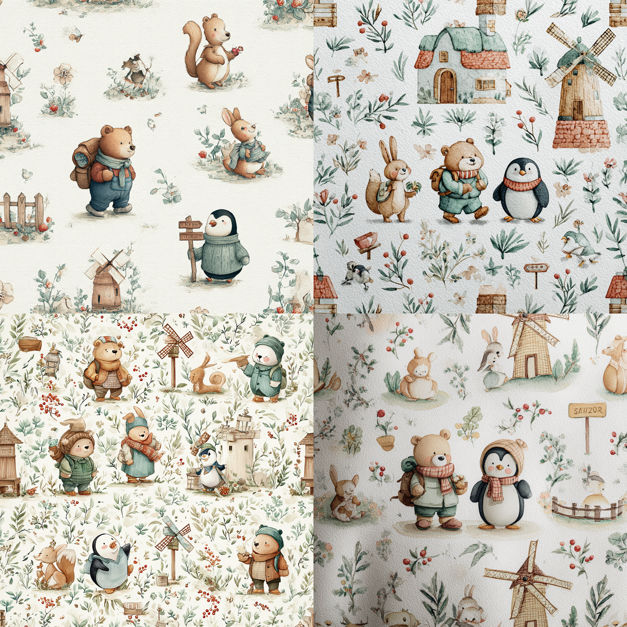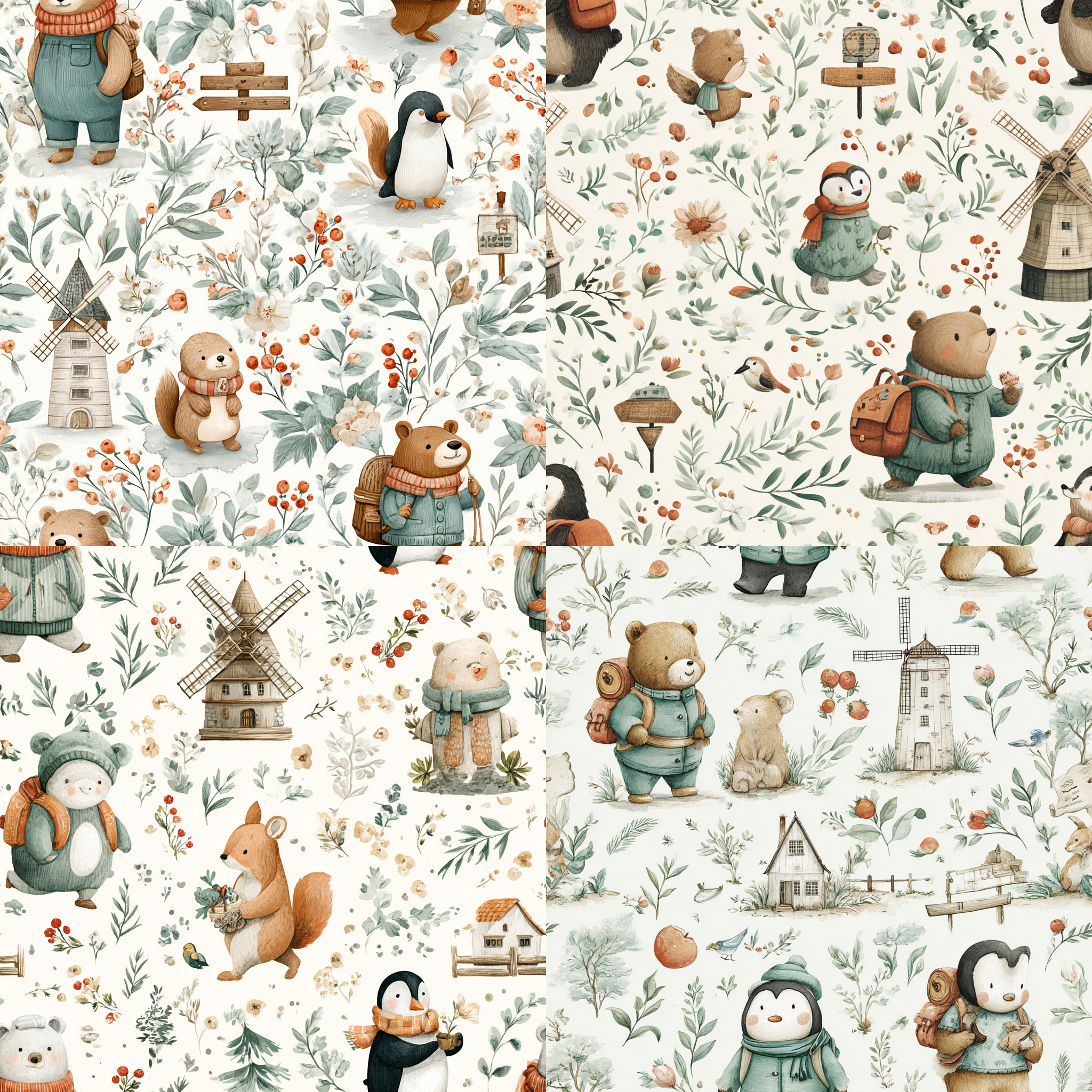 Design an enchanting pattern depicting playful bears in the forest, surrounded by blooming lilac trees and slender branches. The color palette should feature soft lavender tones for the flowers, with light beige or cream hues creating a harmonious backdrop. Ensure each animal is rendered with meticulous detail, allowing their graceful features to shine against the natural setting. This wallpaper will add warmth and charm to any space! --niji