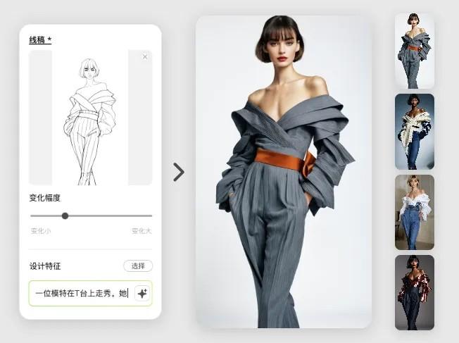 在LOOK AI上,服装设计师信手画下几笔线条,填充色块后,就能生成如实拍一样的高保真模特试穿效果图,褶皱、光影、面料纹理都清晰可见。LOOK AI “边画边出图”的做法,缩短了过去服装设计的漫长生产流程,将原创品牌长达数月的设计周期,缩减至几天内。